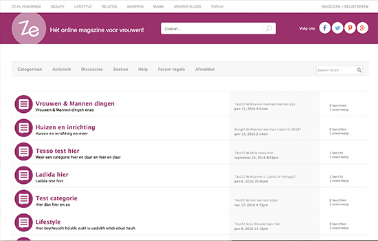 Voor Ze.nl heb ik in samenwerking met 1Media het forum geprogrammeerd. Het forum is ook gekoppeld aan de website back-end van Ze.nl